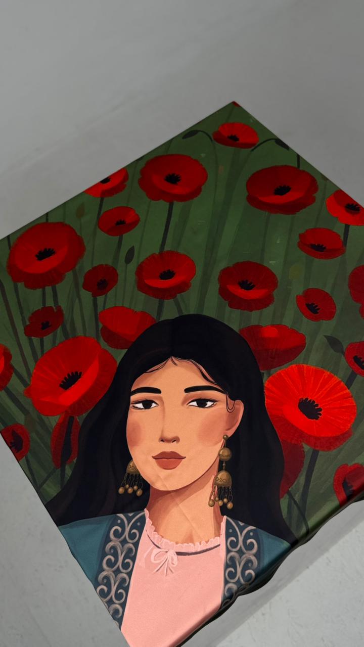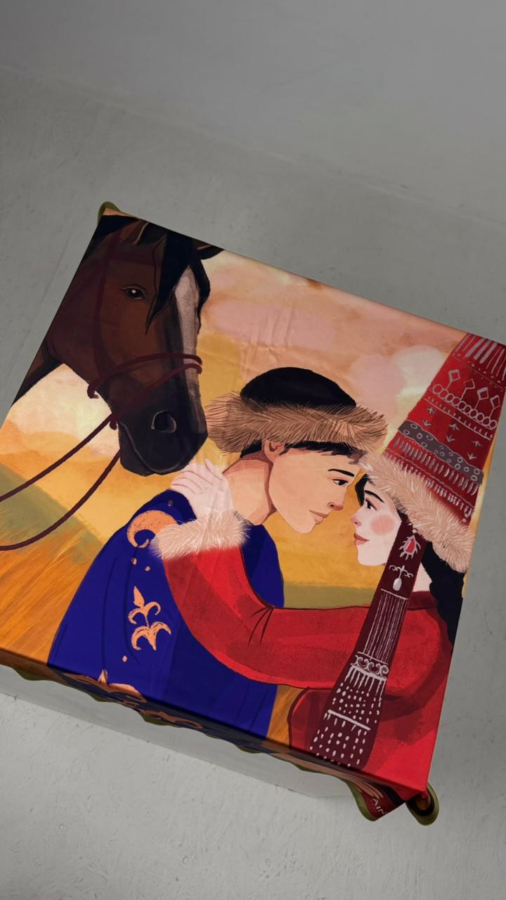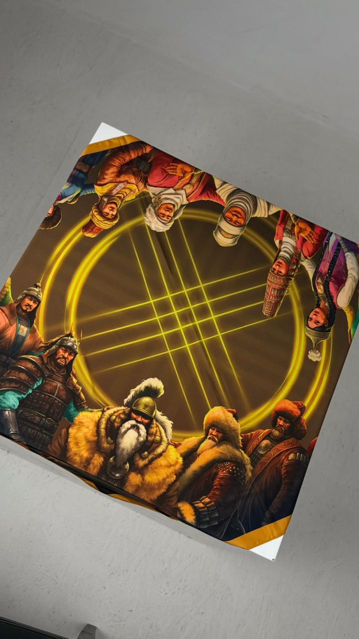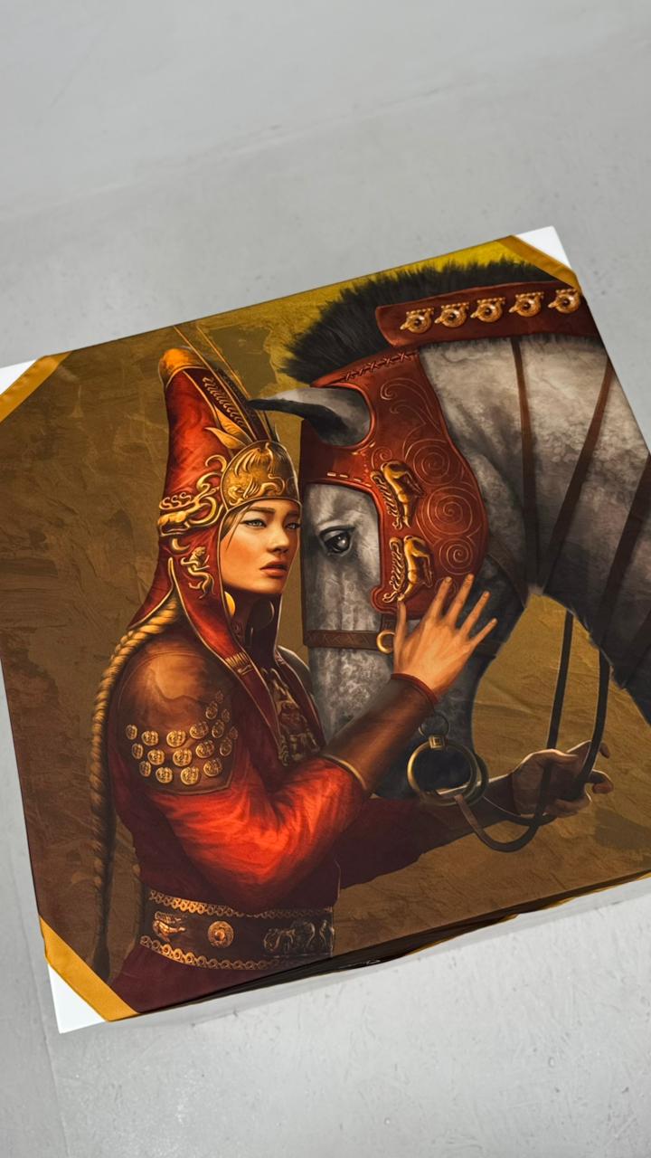 Томирис - символ независимости, достоинства и силы духа. Она - великая женщина, защитившая честь и свободу своего народа. Её образ сочетает нежность и отвагу, красоту и решимость. Этот принт олицетворяет внутреннюю силу, свободу и женское величие.