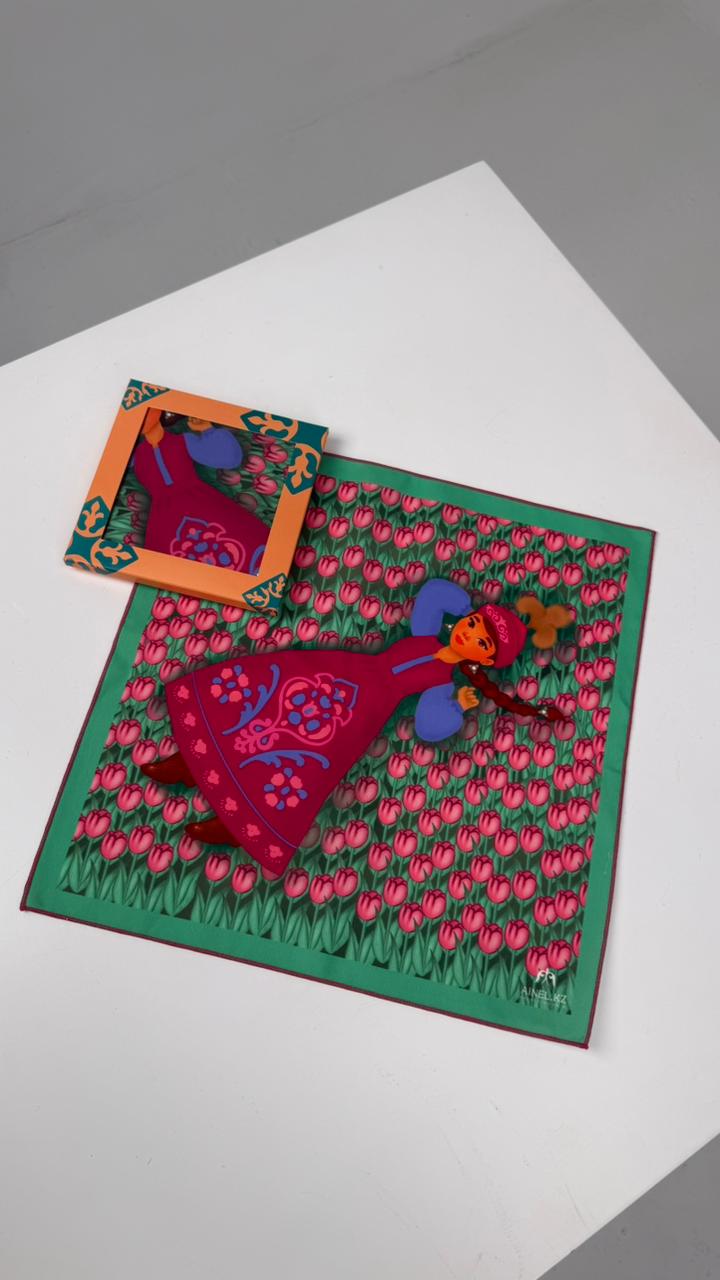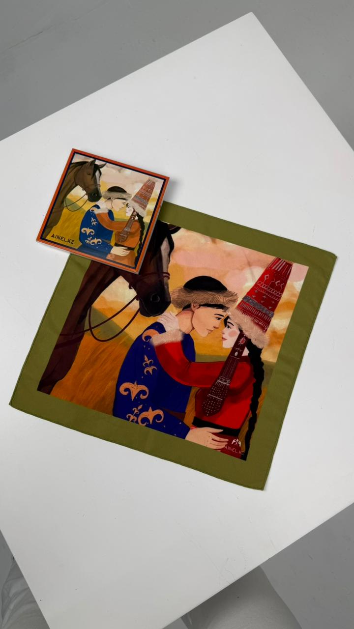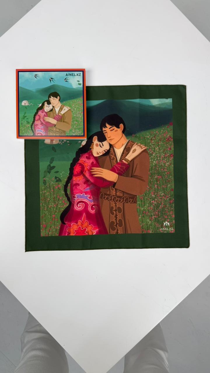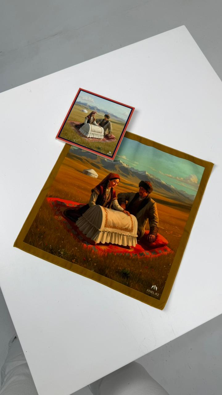 Подарочный карманный платок с эскизом "Ғашықтар" шелк