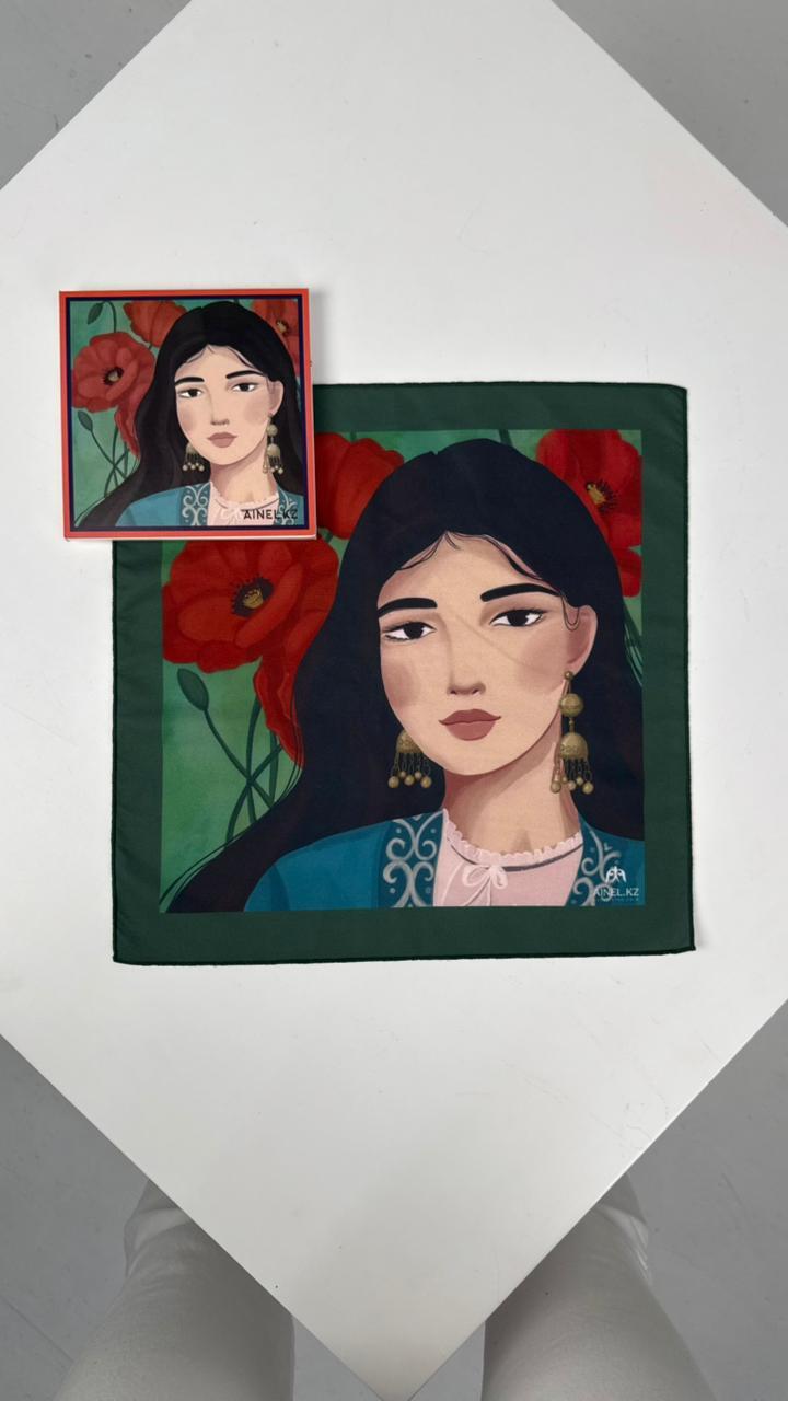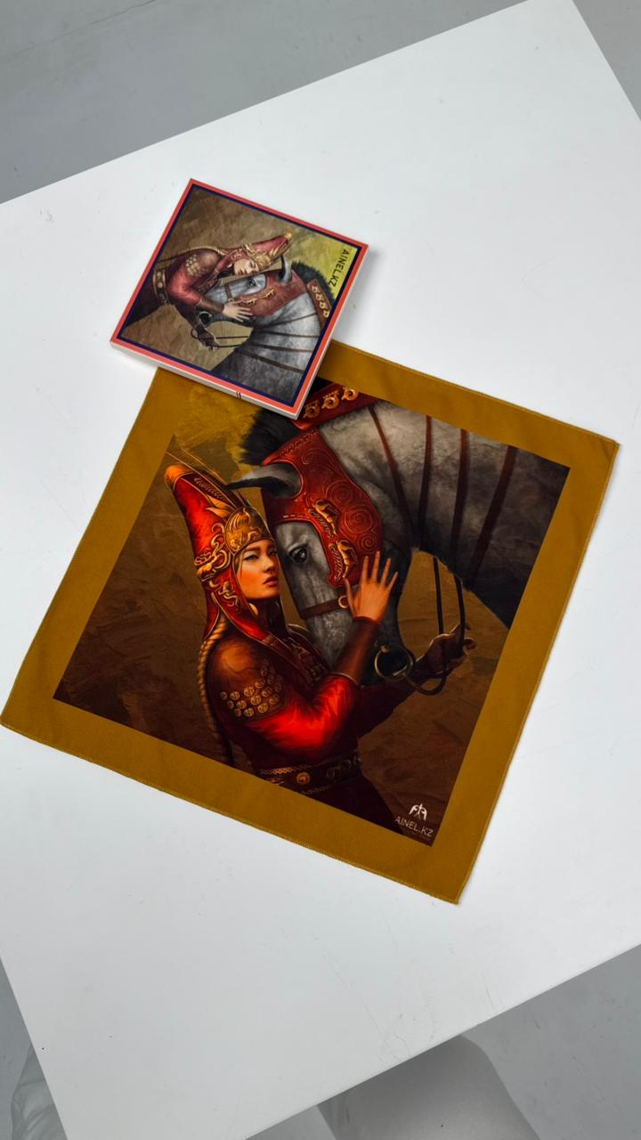 Подарочный карманный платок с эскизом "Томирис" шелк