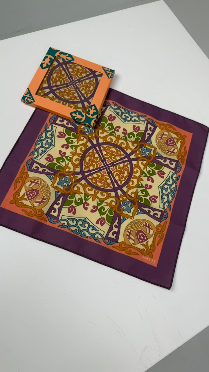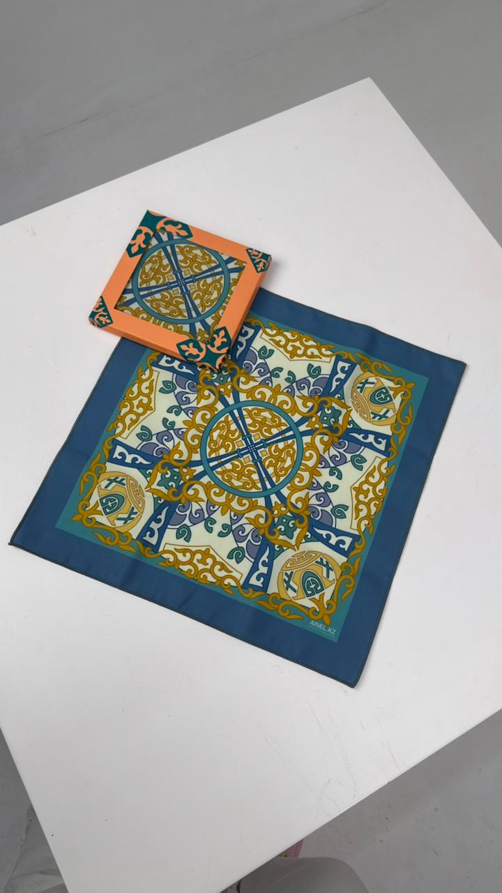 Подарочный карманный платок с эскизом "Шанырак" шелк