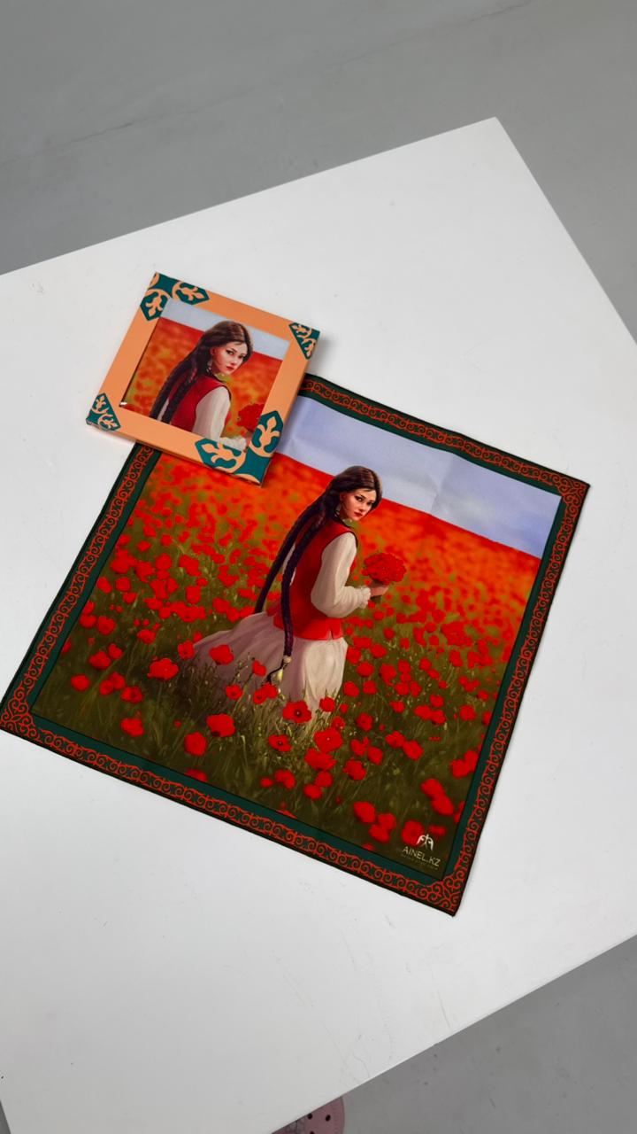 Подарочный карманный платок с эскизом "Девушка в маках" шелк