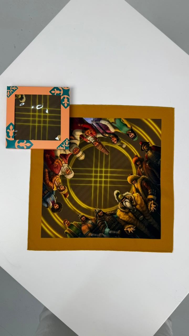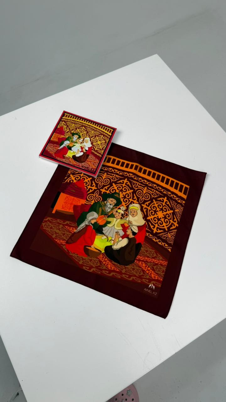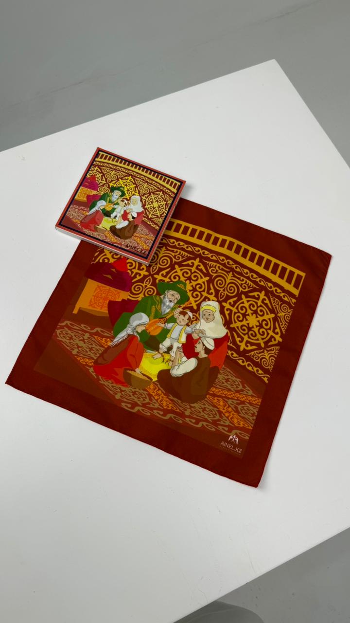 Подарочный карманный платок с эскизом "Сүндет той" шелк