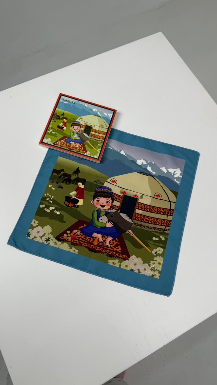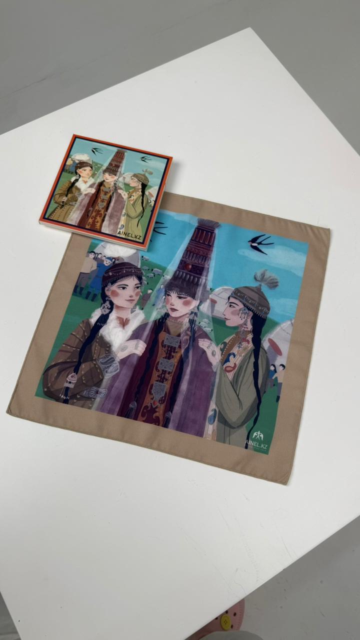 Подарочный карманный платок с эскизом "Тұсау кесу (кыз)" хлопок