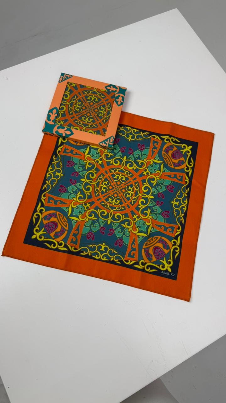 Подарочный карманный платок с эскизом "Екі рудың күші" шелк