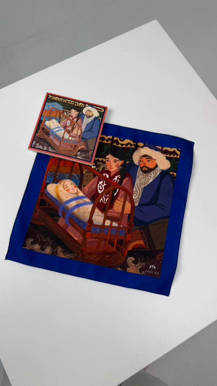Подарочный карманный платок с эскизом "Тұсау кесу (кыз)" шелк